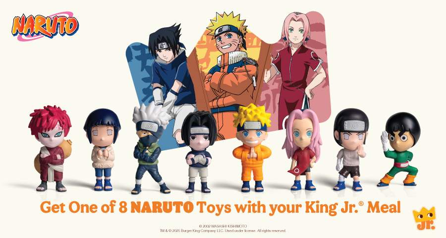 Order any King Jr. Meal and score 1 of 8 exclusive Naruto toys — only available with this promo! Each meal includes fries and a drink, and comes with a surprise Naruto toy (randomly given, while stocks last). Choose from: