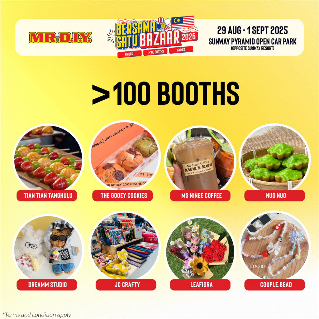 The four-day extravaganza will feature more than 100 booths showcasing Malaysia’s most viral food and product vendors, as well as booths from MR D.I.Y. Group’s own family of brands – MR. D.I.Y., MR. TOY, and MR. DOLLAR. Visitors can look forward to a wide range of local favourites including roti canai, nasi lemak, laksa, kuey teow, burgers, noodles, desserts, and a wide variety of beverages. There will also be handmade accessories, handicrafts, stationery, cosmetics, clothing, flowers, and more on offer.