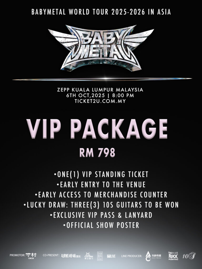 Tickets for “BABYMETAL WORLD TOUR 2025-2026 IN ASIA – LIVE IN KUALA LUMPUR” are already on sale at ticket2u.com.my/BABYMETAL-KL25 — don’t wait any longer, secure your tickets now before they’re gone!