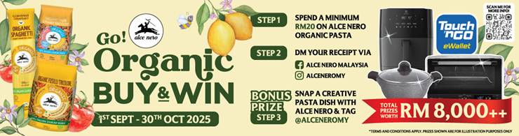 In celebration of Organic Month and National Pasta Month, from 1 September to 31 October 2025, Alce Nero invites Malaysians to join the Buy & Win Contest and stand a chance to win prizes worth over RM8,000: