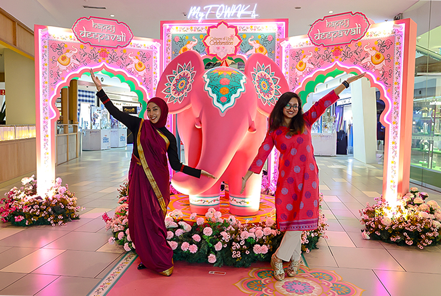 This year’s decor showcases Deepavali through a vibrant display of lights, textures, and pastel hues, inspired by the cultural charm of Little India. Drawing from ancient Indian illustration motifs and the iconic Patrika Gate, the design is reimagined to reflect Malaysia’s multicultural spirit. Shoppers are invited to immerse themselves in this festive space, capturing beautiful moments while celebrating the traditions and soul of Deepavali.