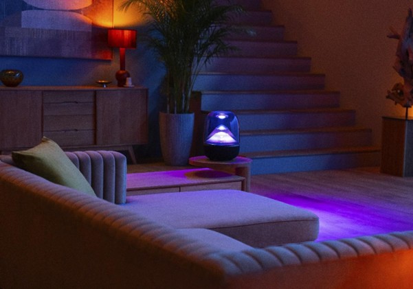 Take the experience beyond sound; relax and let Aura Studio 5 set the ambiance. A new dynamic, multi-layered lighting projection system creates visual effects that complement your music, blending softly on walls, ceilings, or pulsing around the transparent dome. With five nature-inspired themes; Ocean, Aurora, Blossom, Sunrise, and Fireplace, each lighting mode brings warmth, depth, and rhythm to the home. For full creative control, simply select from available static colours or switch between the dynamic themes via the Harman Kardon ONE app.