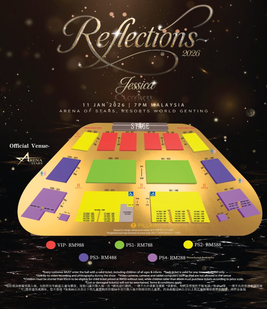 On 11 January 2026 (Sunday) at 7pm, Jessica Concert Tour 2026 <Reflections> in Malaysia is set to give her fans, Golden Stars a dazzling spectacle at Arena of Stars, Resorts World Genting.