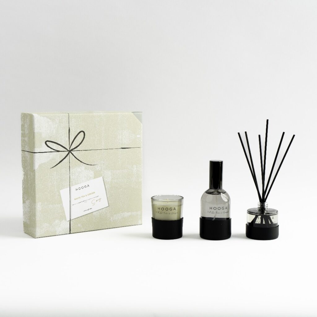A great scent has a way of turning a house into a home and telling a story without saying a word. The HOOGA Black Series Gift Set is a beautifully curated set that includes a 100ml spray, a 70g scented candle, and a 50ml reed diffuser with elegant 20cm sticks. Designed to deliver a long-lasting, clean, and revitalising scent, it is perfect for turning any room into a serene retreat. Choose from three calming aromas: the earthy warmth of White Tea & Ginger, the bright citrus zest of Kenya Yuzu, or the cool, clean notes of Green Tea & Cucumber.