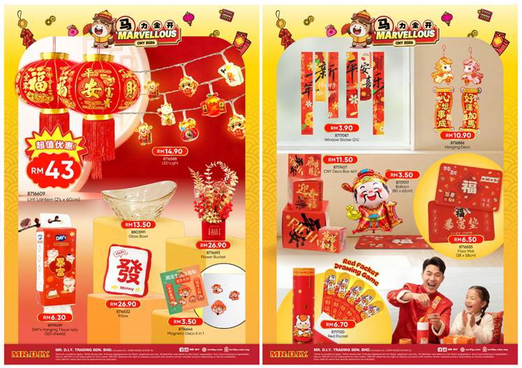 Beyond the digital celebration, MR D.I.Y. also brings festive cheer to Malaysians with its Marvellous CNY 2026 product highlights, offering exclusive Chinese New Year décor and food items from as low as RM1. Customers can choose from a variety of festive essentials, including lanterns, LED lights, flower buckets, hanging tissues, floor mats, hanging decorations, window stickers, red packets, ornaments, fashion accessories and more – making festive preparations both easy and affordable.