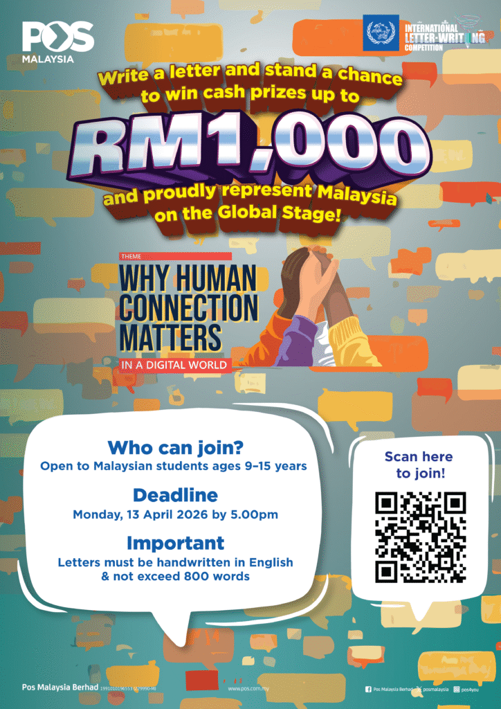 Pos Malaysia Berhad (“Pos Malaysia”), the national post and parcel service provider, is excited to once again invite Malaysian students aged 9 to 15 years to participate in the 55th International Letter-Writing Competition for Young People 2026. Held annually by the Universal Postal Union (UPU), this global competition celebrates the timeless joy of letter writing.