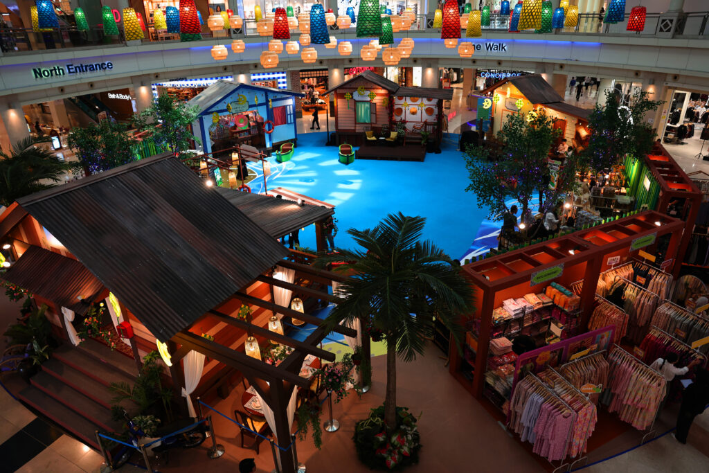 The mall’s Centre Court has been transformed into a picturesque coastal retreat, featuring an elevated Rumah Kampung structure and rustic sandbar swings. This serene setting serves as the backdrop for a celebration of gratitude, family bonds, and the timeless beauty of coastal heritage.