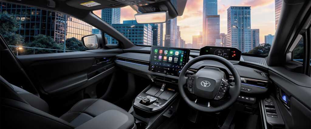 Leading the lineup is the Toyota bZ4X, Toyota’s dedicated battery electric SUV developed under the brand’s Beyond Zero philosophy, priced from RM 220,000.00. The model delivers enhanced BEV performance supported by improved power efficiency and battery capacity, enabling a cruising range of up to approximately 480 km while maintaining strong everyday usability. Built on a BEV-dedicated architecture, the vehicle integrates a newly developed eAxle system, advanced battery temperature management that shortens DC charging time, and a 14-inch multimedia display with enhanced voice recognition. These technologies combine with a spacious cabin and refined electric driving experience to deliver the quiet, smooth and intuitive performance expected of a next-generation electric SUV.