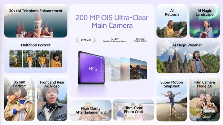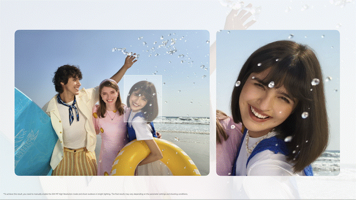 [5] This effect requires manual activation of the 200 MP High Resolution Mode and shooting under bright outdoor lighting conditions. Actual results may vary depending on camera settings and shooting environments. Please refer to real-world performance.