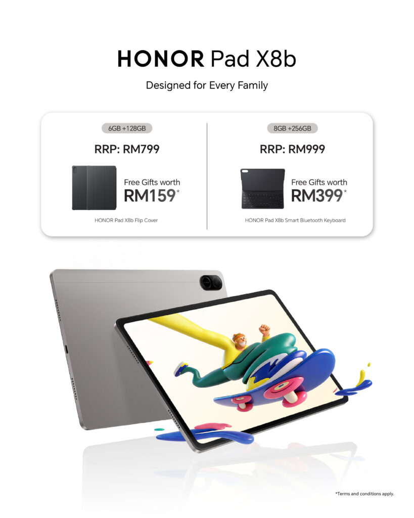 The HONOR Pad X8b LTE is designed as a versatile tablet for the whole family, supporting work, study, entertainment, and children’s usage within a single household. With built-in LTE connectivity, the tablet delivers all-day performance, large storage capacity, reliable durability, and a comfortable viewing experience at an accessible starting price of RM799.