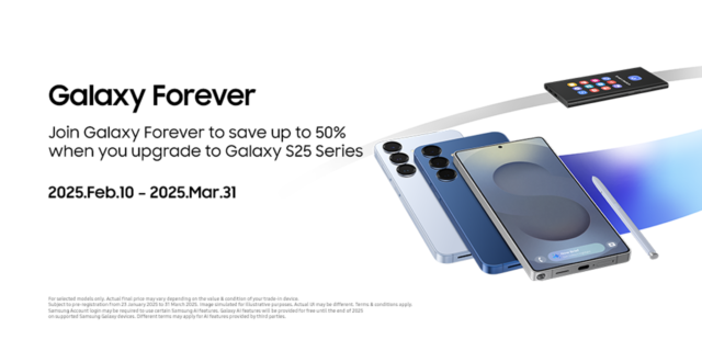 Thinking of upgrading your mobile device? Good news! Until 31 March 2025, existing users of the Galaxy S22, S23 and S24 Series can trade in their current device and get up to RM3,900 off the new Galaxy S25 Series. Just register to be a Galaxy Forever member to enjoy this exclusive deal.[1]