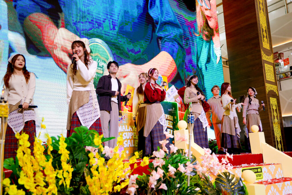 At the Centre Court, a stunning Minangkabau roof sits on top of a LED Screen structure with a Tangga Batu Rumah Melaka as the base which forms the centerpiece of the entire decoration, serving as the digital heart of Rona Raya. Overhead, hanging batik fabrics and colourful shopping bags, in collaboration with Malaysia Super Sale by Tourism Malaysia, bring a dynamic and festive retail spirit. The entire space is filled with lush greenery and vibrant plants, creating a refreshing and inviting ambiance. Adding to the elegance, mannequins dressed in exquisite batik fashion and local designer wear from participating brands showcasing the beauty of traditional and contemporary Malaysian fashion.
