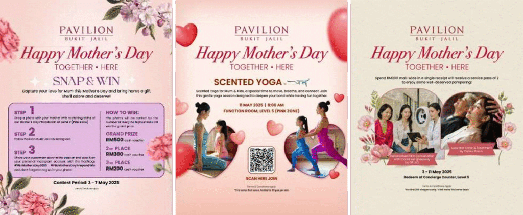 At Pavilion Bukit Jalil, Mother’s Day isn’t just a day – it’s an experience. Whether she’s a glam goddess, a wellness queen, or a foodie adventurer, you’ll find everything you need to make her feel truly special. Plus, don’t miss out on exciting mall-wide activities like our Snap & Win contest, Scented Yoga sessions by Jal Yoga, and the exclusive Mom’s Pamper Pass filled with perks she’ll love.