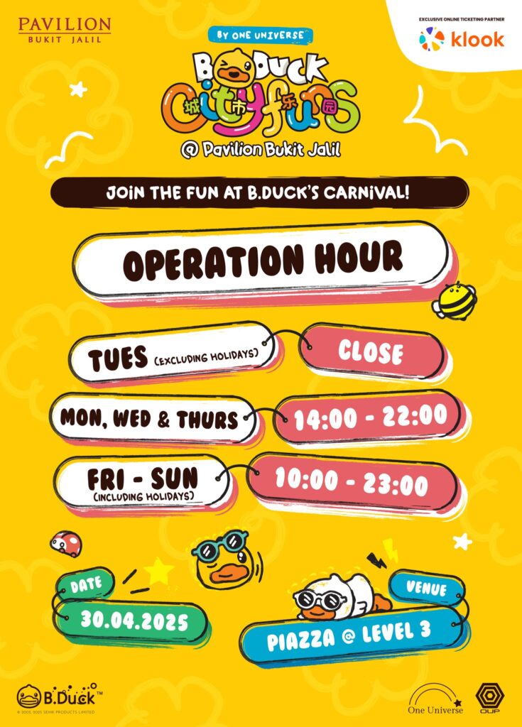 To make your duck-venture even smoother, B.Duck City Funs has teamed up with Klook, a leading platform for experiences and travel services in Asia. “We are excited for the arrival of the B.Duck City Funs theme park in Malaysia, and we look forward to the joyful, imaginative, and meaningful family moments together. With Klook, visitors can conveniently book their tickets in advance, enjoy up to 10% savings, and skip the queues at the ticketing counter—making it easier than ever to enjoy a fun-filled day out with the family,” said Sarah Wan, General Manager of Klook, Indonesia, Malaysia and Singapore.